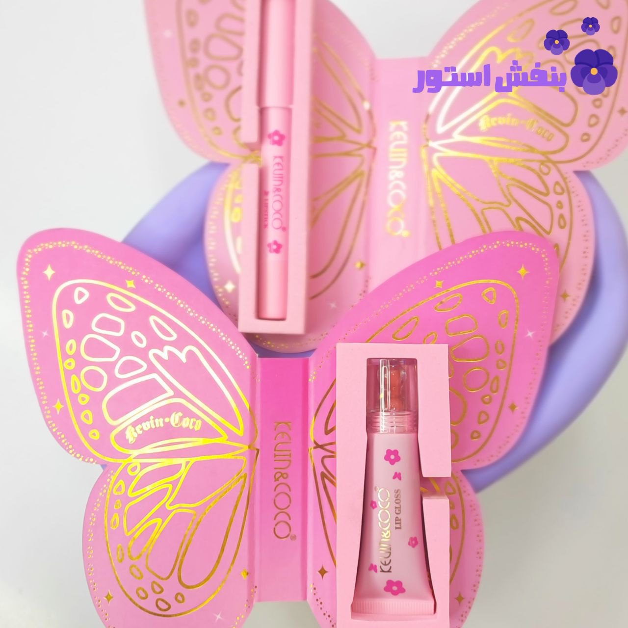 پک لیپ گلاس کریستالی و رژ لب مدادی مدل پروانه کوین اند کوکو اورجینال